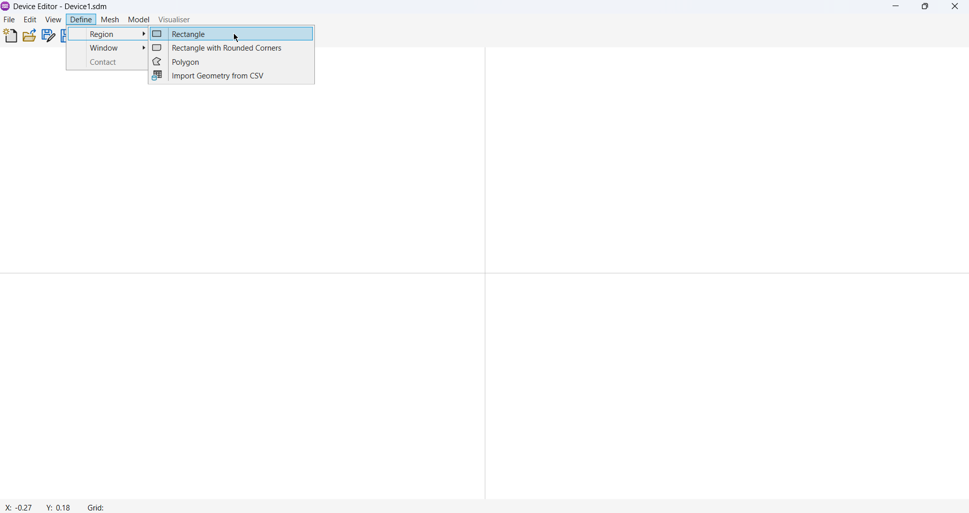 An initial grid is defined by specifying a set of vertical and horizontal lines. Anywhere these lines intersect with each other or with a region boundary, a point is inserted into the mesh.